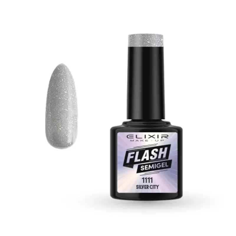 Elixir Professional Semi Gel Flash Effect Ημιμόνιμο Βερνίκι Νυχιών 1111 Silver City Ασημί Λαμπερό 8ml