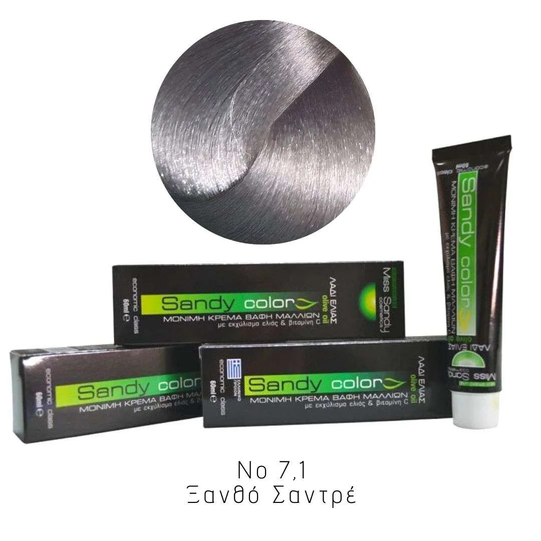 Miss Sandy Βαφή Μαλλιών με λάδι ελιάς και βιταμίνη C No 7,1 Ξανθό Σαντρέ 60ml