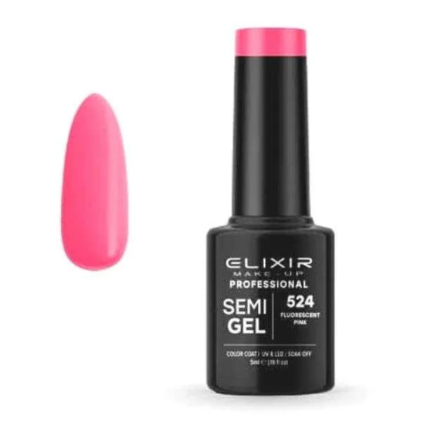 Elixir Professional Semi Gel Ημιμόνιμο Βερνίκι Νυχιών 524 Fluorescent Pink Ροζ Έντονο Γλυκό 5ml