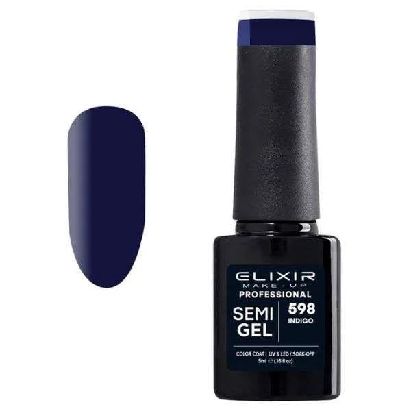 Elixir Professional Semi Gel Ημιμόνιμο Βερνίκι Νυχιών 598 Indigo Μπλε Σκούρο 5ml