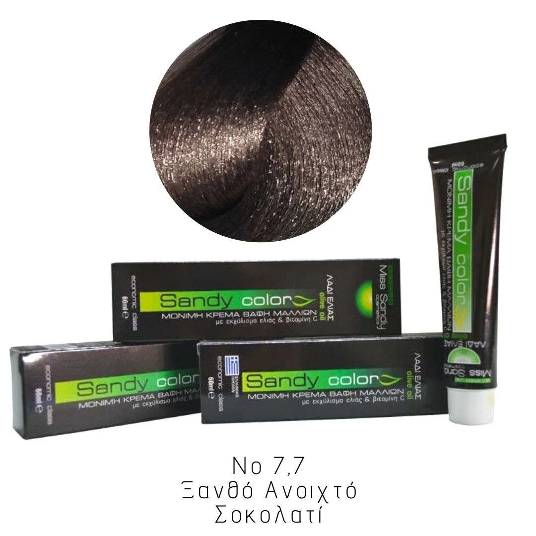 Miss Sandy Βαφή Μαλλιών με λάδι ελιάς και βιταμίνη C No 7,7 Ξανθό Ανοιχτό Σοκολατί 60ml