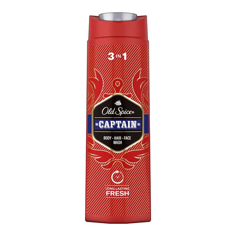 Old Spice Captain 3 in 1 Body, Hair & Face Wash 400ml Long Lasting Scent