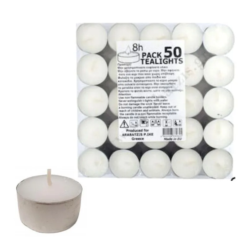 Tealight Candles Κεράκια Ρεσώ 50 τμχ 8 ωρών Καύσης Λευκά