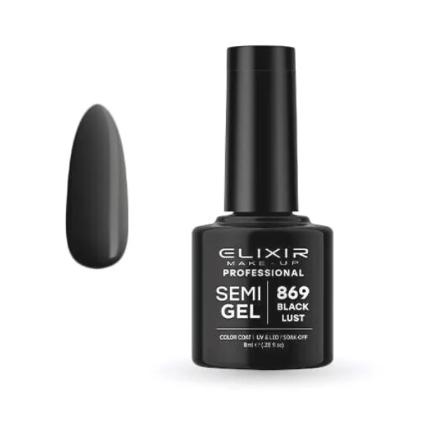 Elixir Professional Semi Gel Ημιμόνιμο Βερνίκι Νυχιών 869 Black Lust Μαύρο 8ml