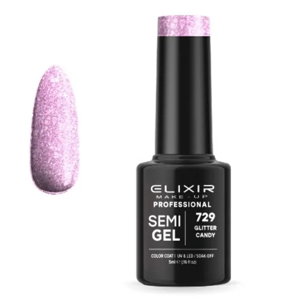 Elixir Professional Semi Gel Ημιμόνιμο Βερνίκι Νυχιών 729 Glitter Candy Ροζ Μωβ Συμπαγές Shimmer 5ml