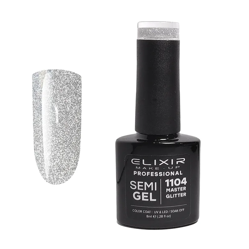 Elixir Professional Semi Gel Ημιμόνιμο Βερνίκι Νυχιών Flash Effect 1104 Master Glitter Ασημί Εφέ Flash 8ml