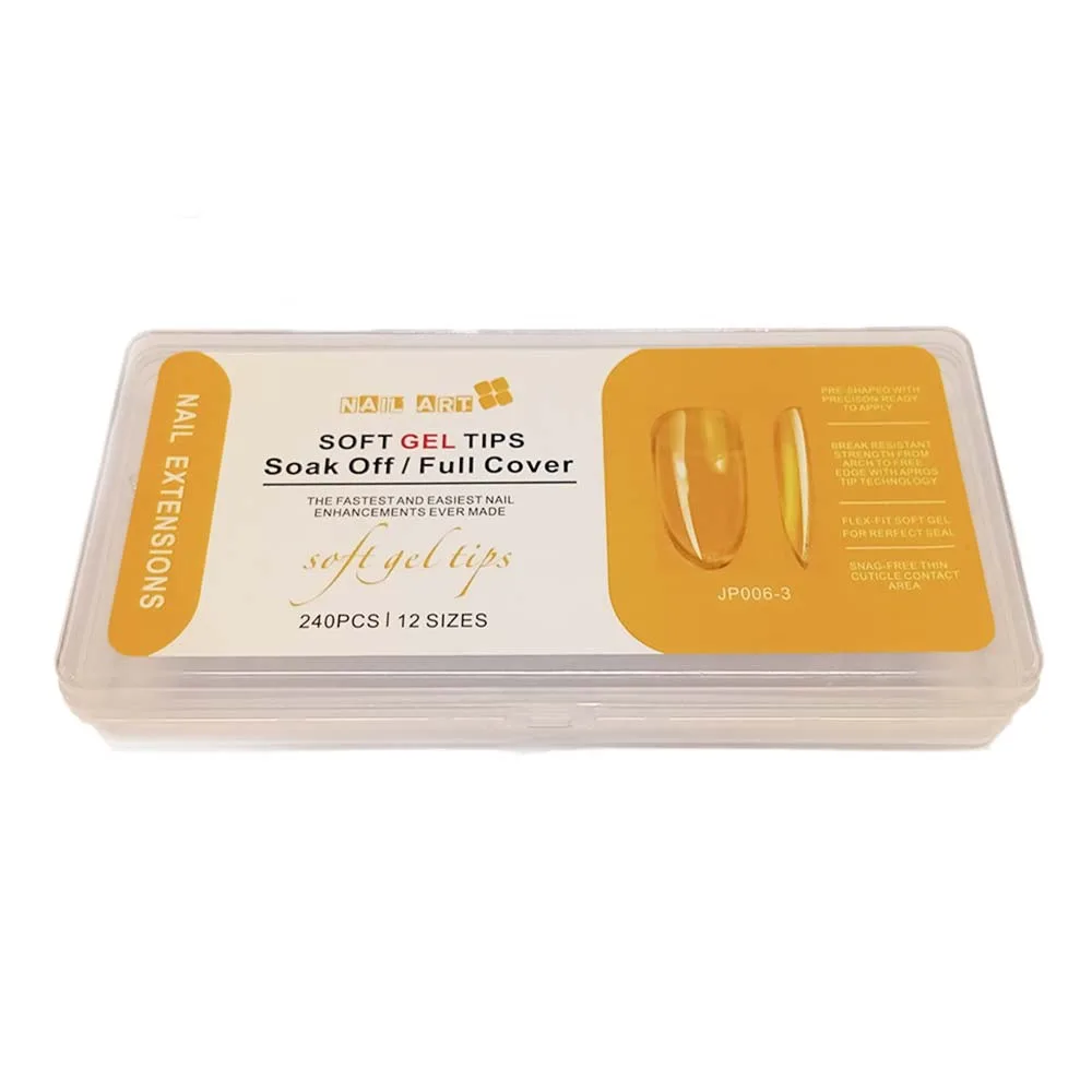 WD Soft Gel Tips Medium Almond Clear Soak Off Full Cover 10 Sizes 240 Pcs