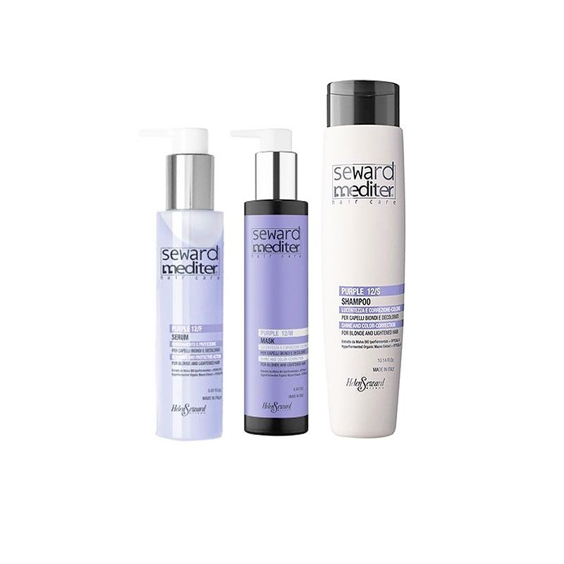 Helen Seward Mediter Purple Σετ Σαμπουάν, Μάσκα & Ορός Εξουδετέρωσης Κίτρινων Τόνων, Αναζωογόνησης & Προστασίας 300ml, 200ml & 150ml