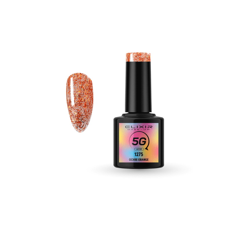 Elixir Professional Semi Gel – Ημιμόνιμο Βερνίκι Νυχιών 5G Effect 1275 Ochre Orange Πορτοκαλί Ώχρα Glitter 5G 8ml