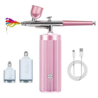 WD Beauty Airbrush System Αερογράφος Νυχιών με 3 Δοχεία 10ml, 20ml, 40ml & Κομπρεσέρ Μπεκ 0.3mm Πίεση 1.9bar Μπαταρίας Ροζ
