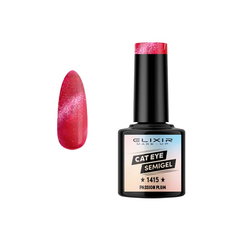 Elixir Cat Eye Effect SemiGel Ημιμόνιμο Βερνίκι Νυχιών 1415 Passion Plum Μεταλλικό Κόκκινο Κεραμιδί 8ml
