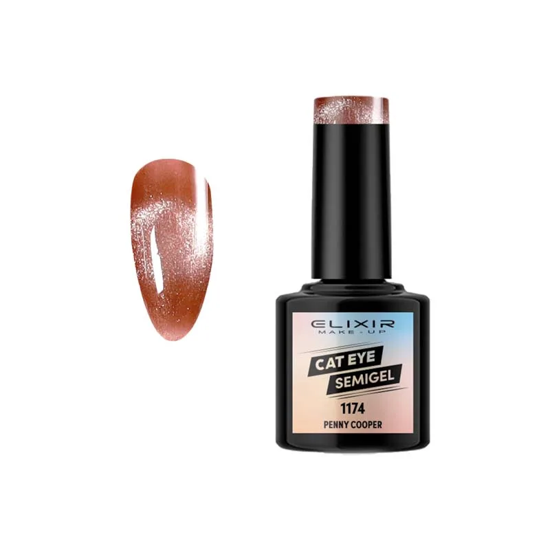 Elixir Cat Eye Effect SemiGel Ημιμόνιμο Βερνίκι Νυχιών 1174 Penny Cooper Καφέ Με Shimmer 8ml