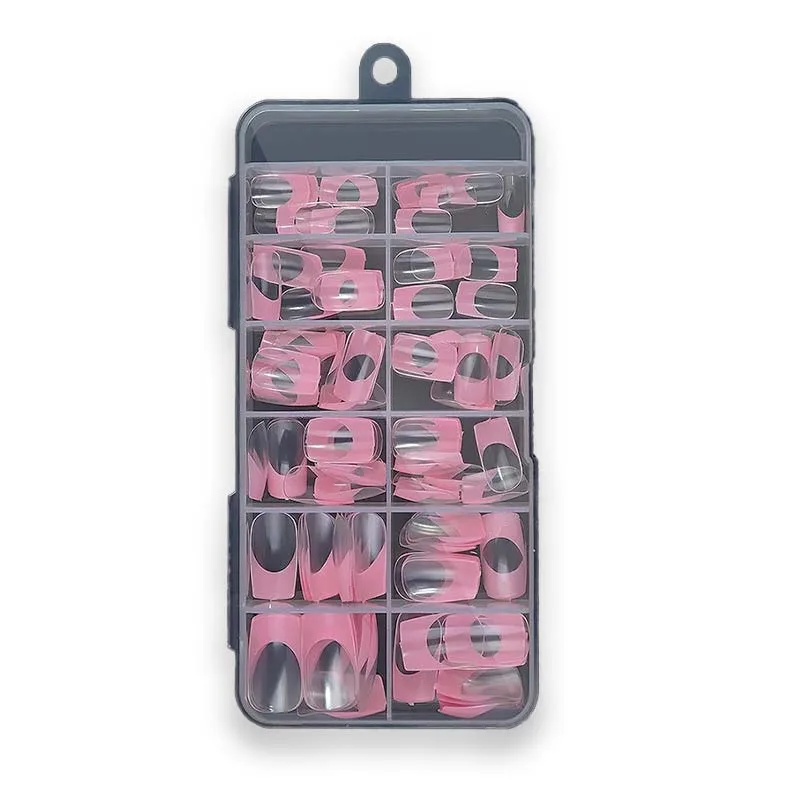 WD Tips Τεχνιτών Nυχιών Γαλλικό Μανικούρ Τετράγωνα – Ροζ Διαφανές 120τμχ