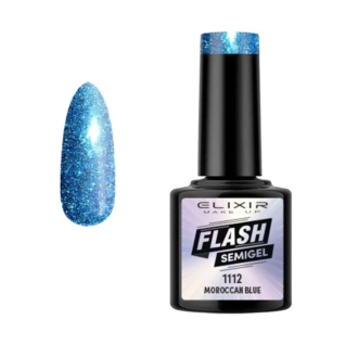 Elixir Professional Semi Gel Ημιμόνιμο Βερνίκι Νυχιών Flash Effect 1112 Moroccan Blue Έντονο Mπλέ Ηλεκτρίκ Γκλίτερ Εφέ Flash 8ml