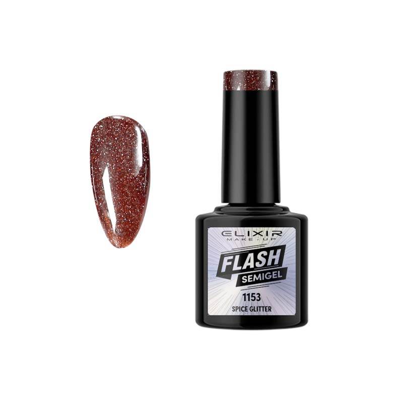 Elixir Professional Semi Gel Ημιμόνιμο Βερνίκι Νυχιών Flash Effect 1153 Spice Glitter Σκούρο Καφέ Γκλίτερ Εφέ Flash 8ml