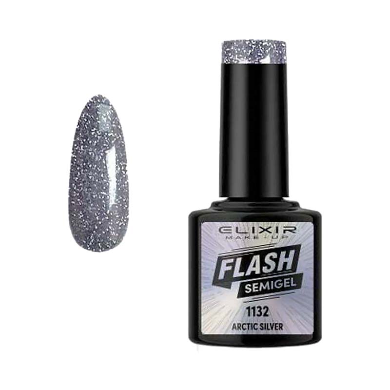 Elixir Professional Semi Gel Ημιμόνιμο Βερνίκι Νυχιών Flash Effect 1132 Arctic Silver Ασημί του Πάγου Εφέ Flash 8ml