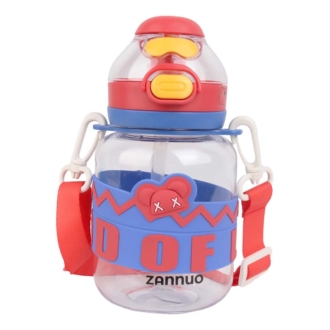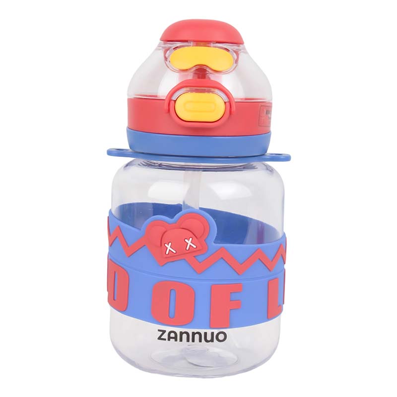 Zannuo Παιδικό Πλαστικό Παγούρι με Καλαμάκι Μπλε Κόκκινο 600ml Ηλικίες +3