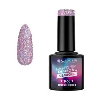 Elixir Professional Semi Gel Ημιμόνιμο Βερνίκι Νυχιών Laser Diamond Effect 1458 Pieces of Lincoln Μωβ Ροζ Με Πολύχρωμο Glitter 8ml