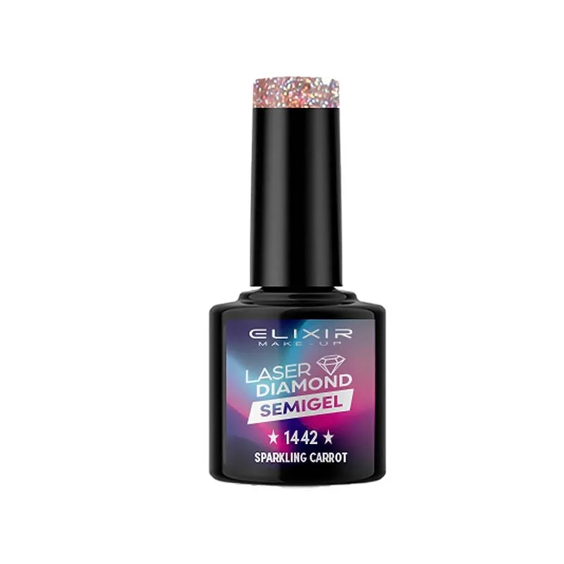 Elixir Professional Semi Gel Ημιμόνιμο Βερνίκι Νυχιών Laser Diamond Effect 1442 Sparkling Carrot Ροδακινί Με Πολύχρωμο Glitter 8ml