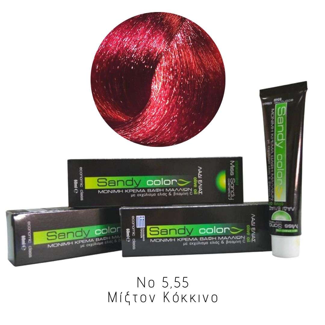 Miss Sandy Βαφή Μαλλιών με λάδι ελιάς και βιταμίνη C No 5,55 Μίξτον Κόκκινο 60ml