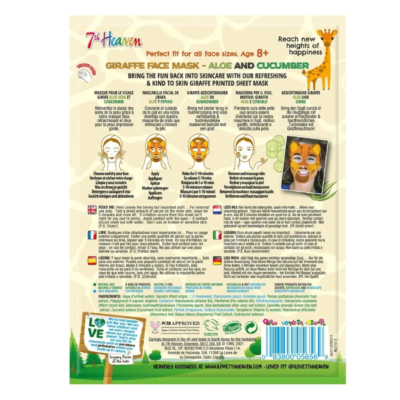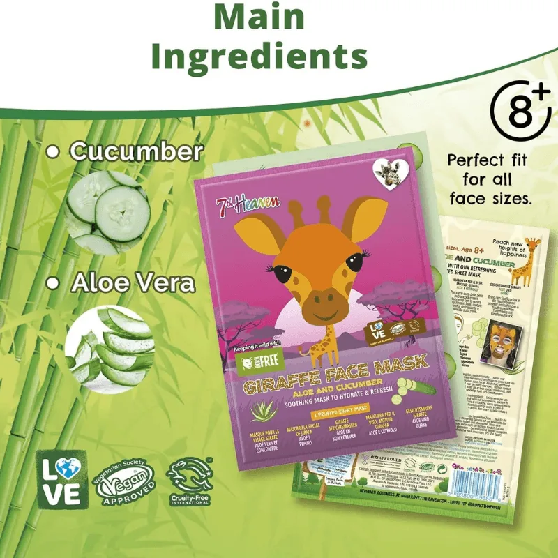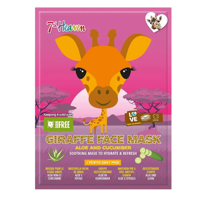 7th Heaven Food Born Free Giraffe Face Mask Aloe & Cucumber 25gr – Μασκά Ομορφίας Πανί Με Σχέδιο Ηλικίες 8+ Vegan