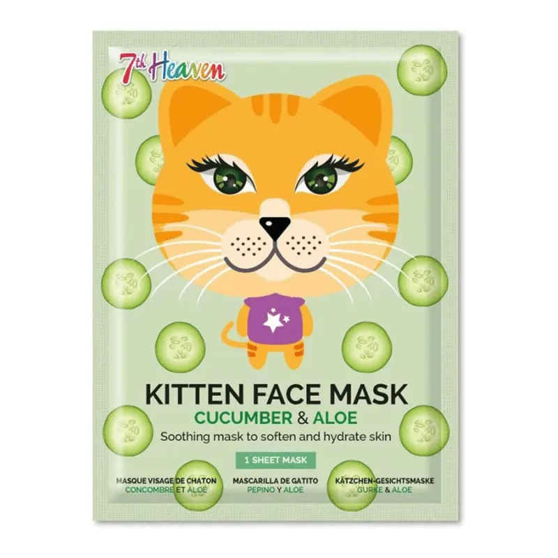 7th Heaven Kitten Face Mask Cucumber & Aloe 25gr – Μασκά Ομορφίας Πανί Με Σχέδιο Ηλικίες 8+ Vegan