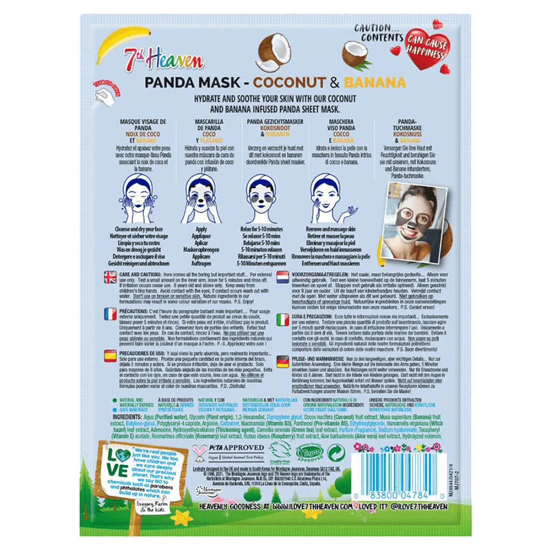 7th Heaven Panda Face Coconut & Banana 25gr – Μασκά Ομορφίας Πανί Με Σχέδιο Ηλικίες 8+ vegan