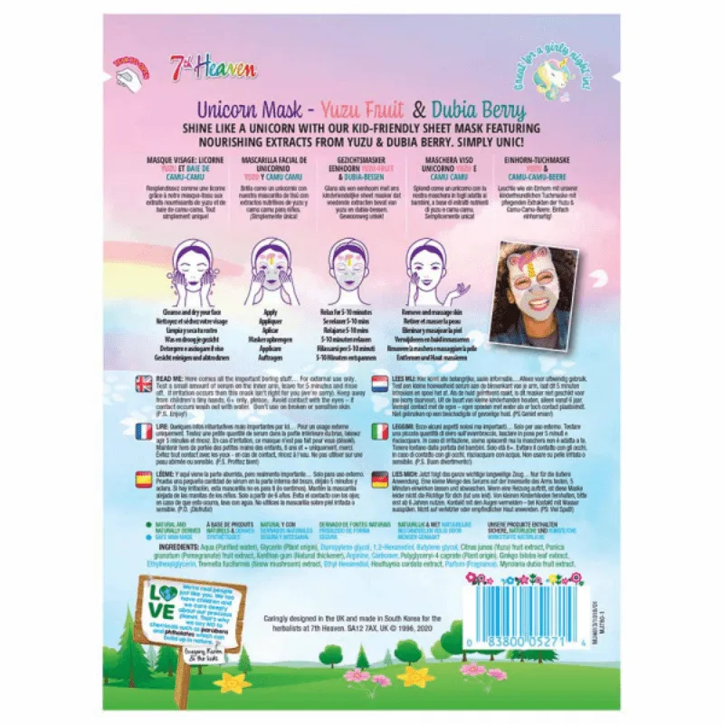 7th Heaven Unicorn Face Mask Yuzu & Dubia Berry 25gr – Μασκά Ομορφίας Πανί Με Σχέδιο Ηλικίες 8+ Vegan