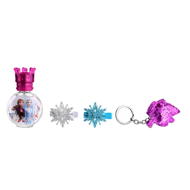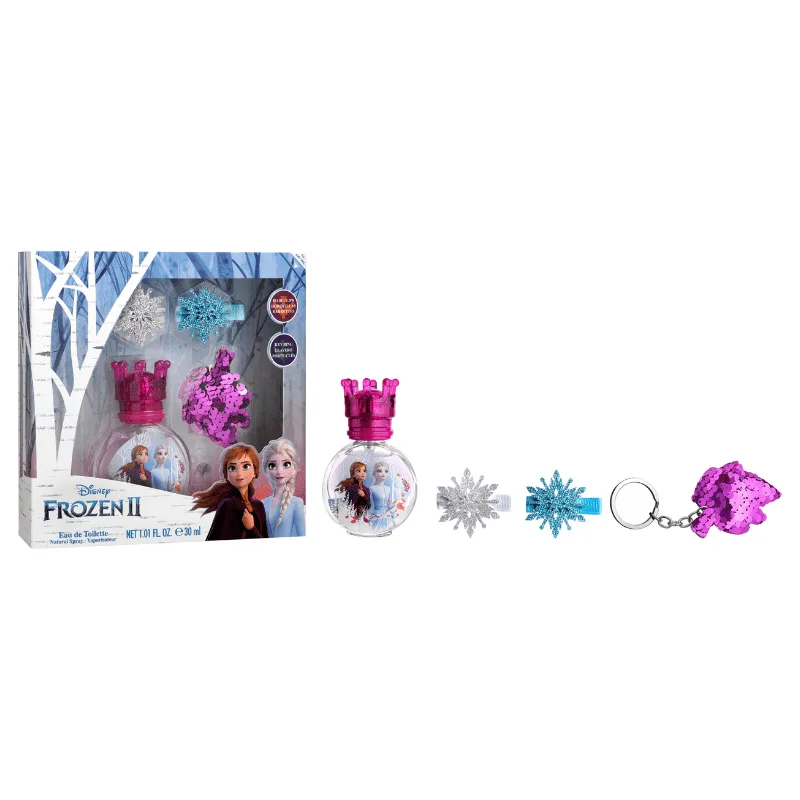 Φρουτώδες Λουλουδένιο Άρωμα με νότες φρεσκάδας , φανταστικό μπρελοκ και λαμπερά κλίπς για τα μαλλιά σου εμπνευσμένα από την Παιδική ταινία κινουμένων σχεδίων Frozen