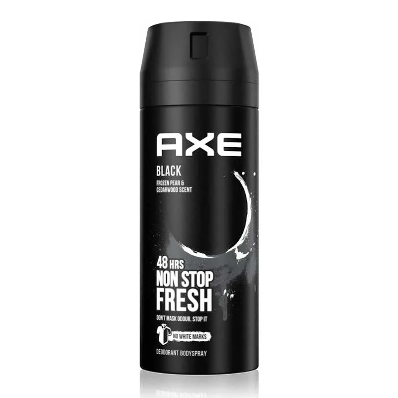 Το Axe black έχει ένα εκλεπτυσμένο άρωμα που συνδυάζει φρέσκες νότες καρπουζιού, περγαμόντου και αχλαδιού με μεθυστικές και ζεστές ξυλώδεις νότες λάβδανου και κέδρου.