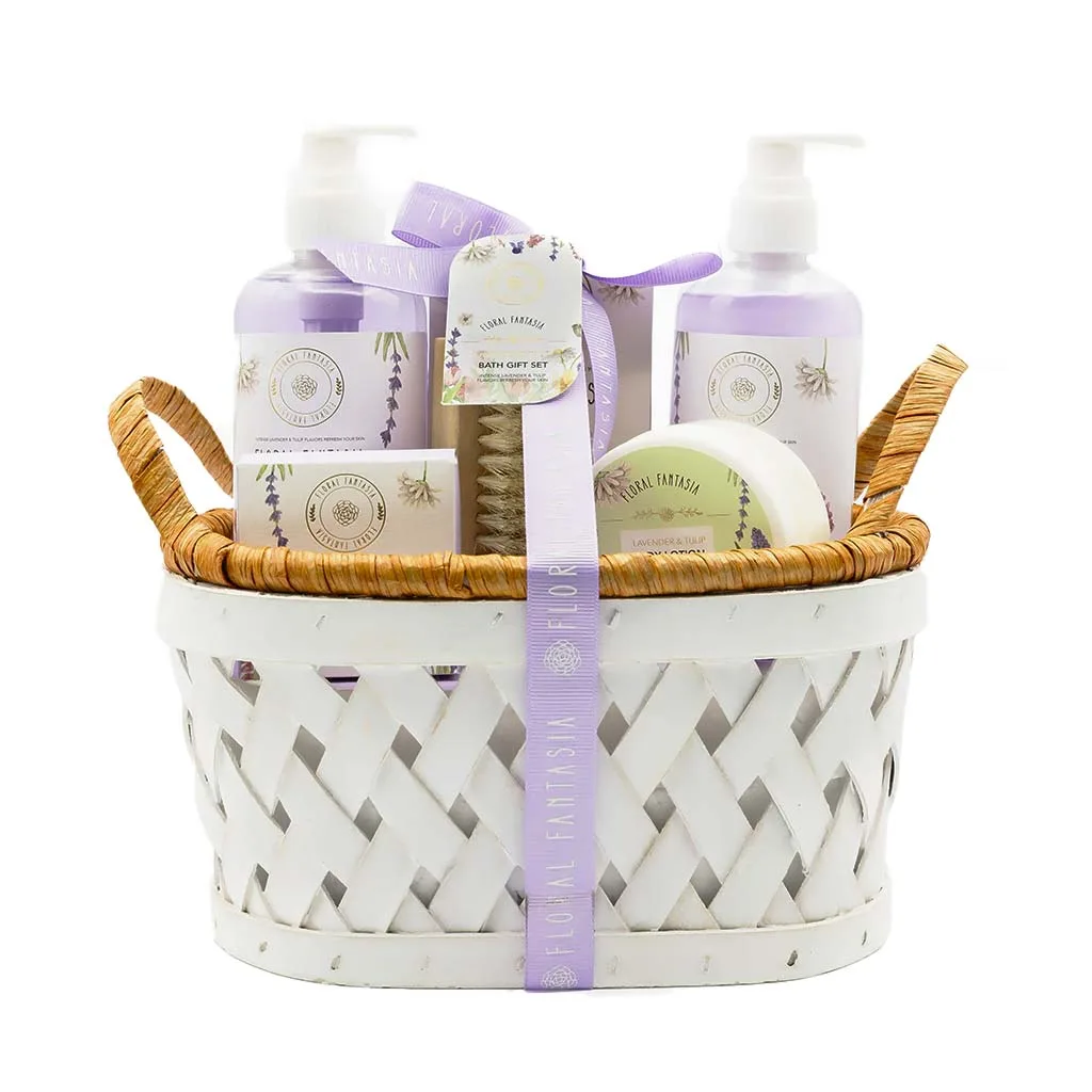 Becasan Nature Wooden Basket Set Floral Fantasy 7Pcs – Σετ Περιποίησης Ξύλινο Καλάθι 25 x 25 x 15cm