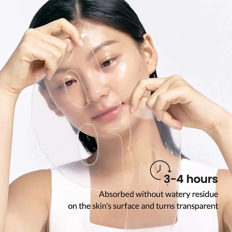 Αφαιρέστε προσεκτικά τη μάσκα από τη συσκευασία. Αφαιρέστε τη διάφανη επίστρωση από τα δύο μέρη της μάσκας και απλώστε τα στο πρόσωπο. Αφήστε το προϊόν στο δέρμα όλη τη νύχτα ή για 3-4 ώρες. Αφαιρέστε τη μάσκα μόνο όταν γίνει διάφανη.