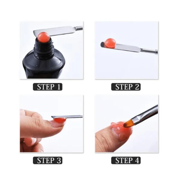 Η μία πλευρά είναι σπάτουλα για τοποθέτηση του Acrygel, και η άλλη πλευρά είναι πινέλο για την εφαρμογή του