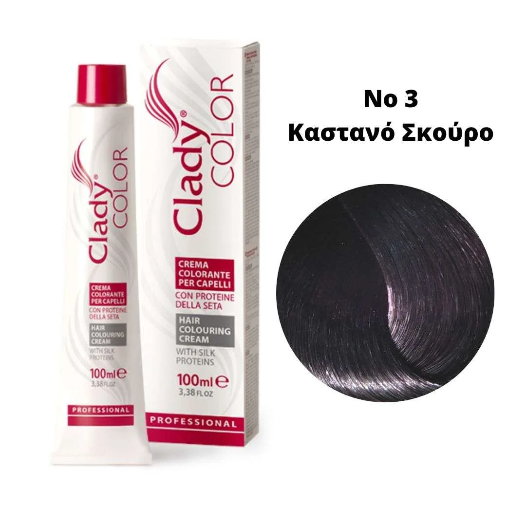 Clady Color Βαφή Μαλλιών Με Πρωτεΐνες Μεταξιού Νο3 Καστανό Σκούρο 100ml