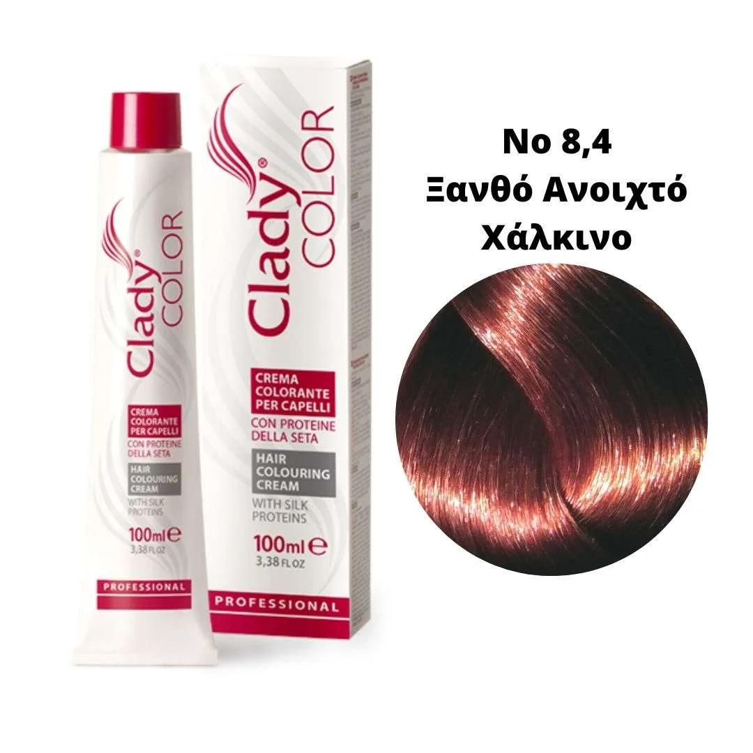 Clady Color Βαφή Μαλλιών Με Πρωτεΐνες Μεταξιού Νο 8,4 Ξανθό Ανοιχτό Χάλκινο 100ml