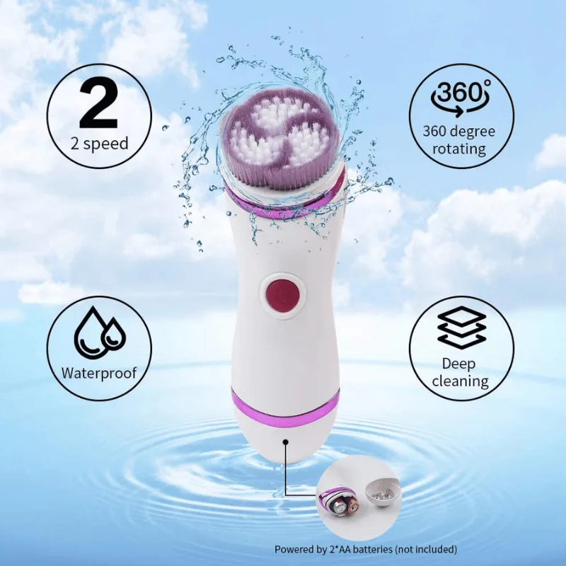 Ηλεκτρικό βουρτσάκι προσώπου με δυο ταχύτητες και 4 ανταλλακτικές κεφαλές – επιφάνειες. Παρέχει βαθύ καθαρισμό, δέκα φορές πιο αποτελεσματικό απο τον χειροκίνητο καθαρισμό και βελτιώνει την δυνατότητα απορρόφησης καλλυντικών προϊόντων.