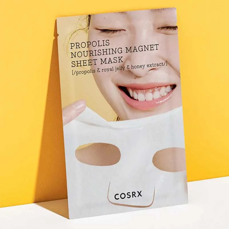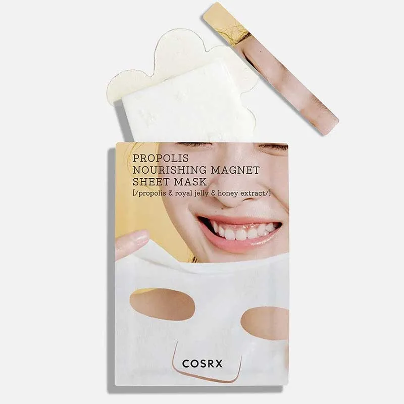 Η Cosrx Full Fit Propolis Nourishing Magnet Sheet Mask είναι μια εμπλουτισμένη με πρόπολη, βασιλικό πολτό και εκχυλίσματα μελιού μάσκα σε πανί που προσφέρει θρέψη και ενυδάτωση που διαρκεί στο δέρμα.