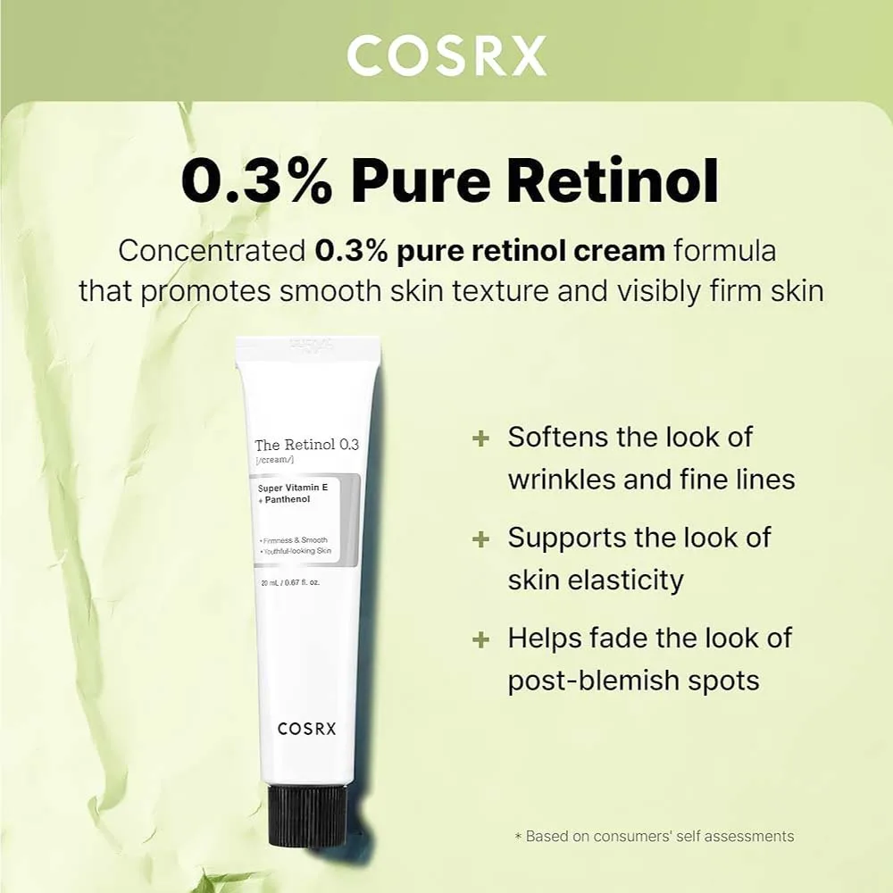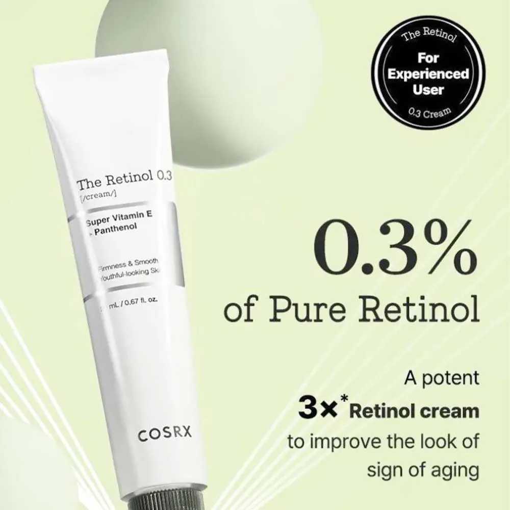 Η Cosrx The Retinol 0.3 Cream είναι μια Κρέμα Προσώπου, λαιμού και ματιών για βελτίωση των ρυτίδων του προσώπου, της περιοχής των ματιών και του λαιμού αλλά περιέχει και συστατικά που την καθιστούν ιδανική για την βελτίωση της ακμής και τη λείανση του δέρματος μετά την ακμή.