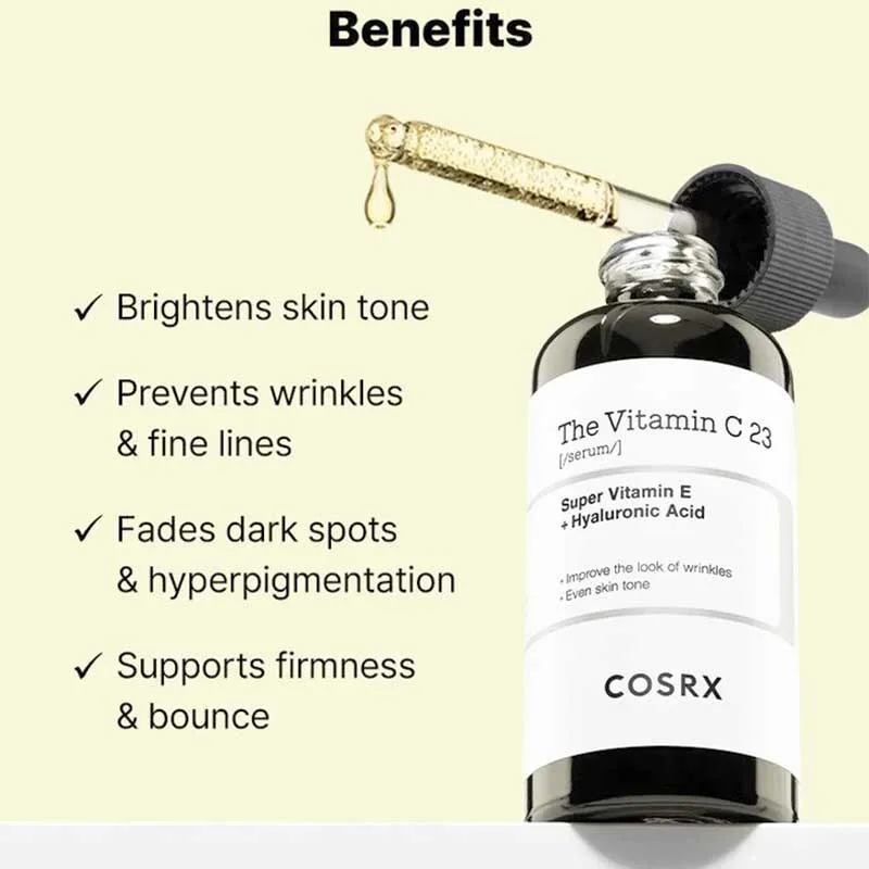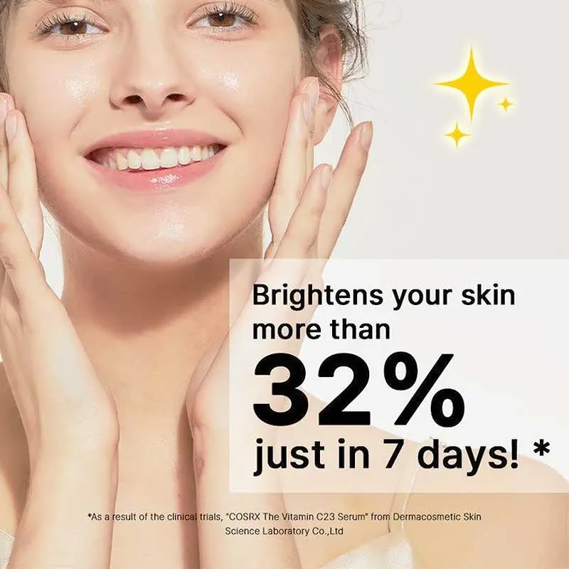 Ο Cosrx The Vitamin C 23 Serum είναι ένας Ορός Υψηλής Συγκέντρωσης 23% σε Βιταμίνη C που έχει Αντιοξειδωτική δράση, προσφέρει λάμψη , βελτιώνει τις κηλίδες και φωτίζει το δέρμα, μειώνει τις ρυτίδες και ενισχύει την ελαστικότητα.