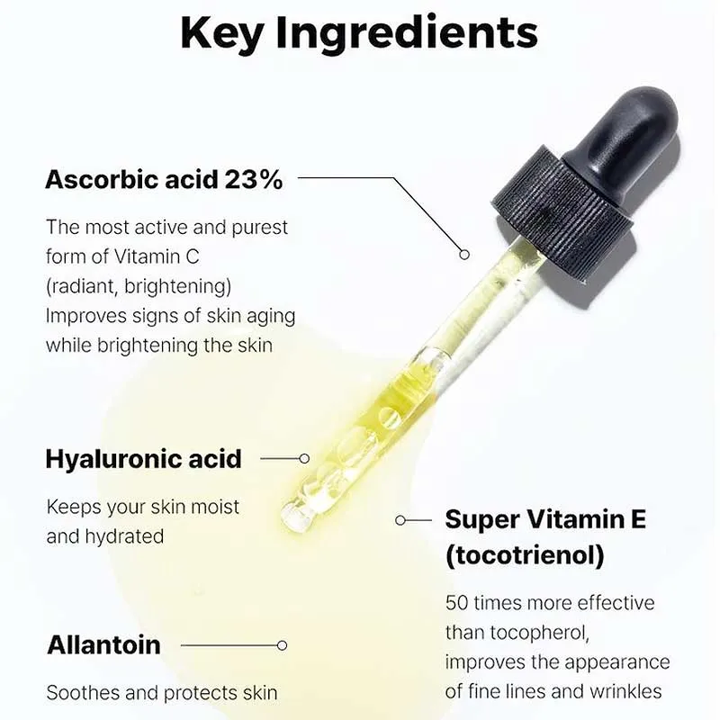 • 23% Καθαρή Βιταμίνη C (Ασκορβικό οξύ):