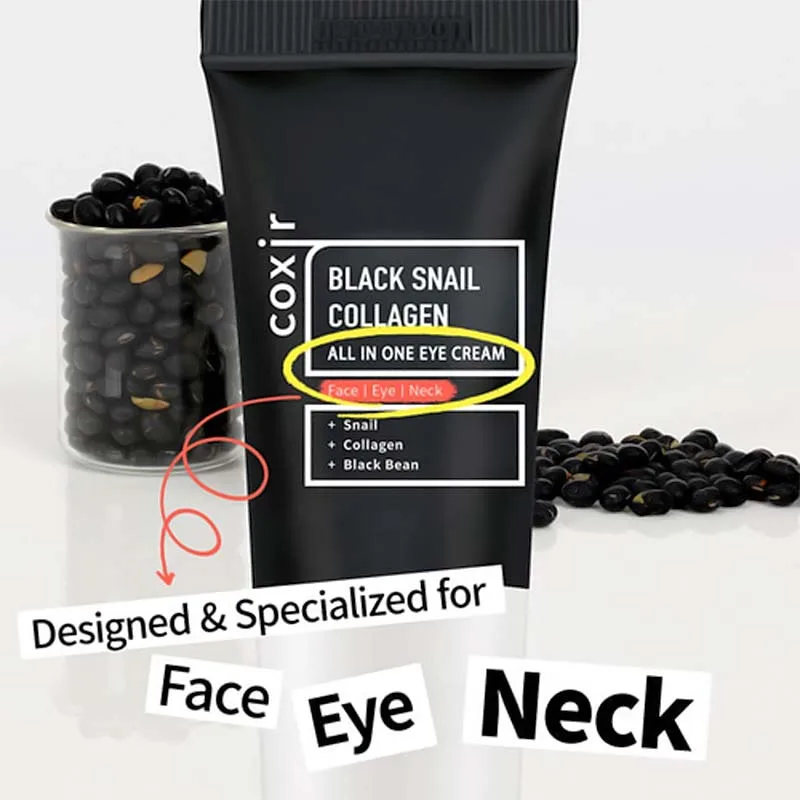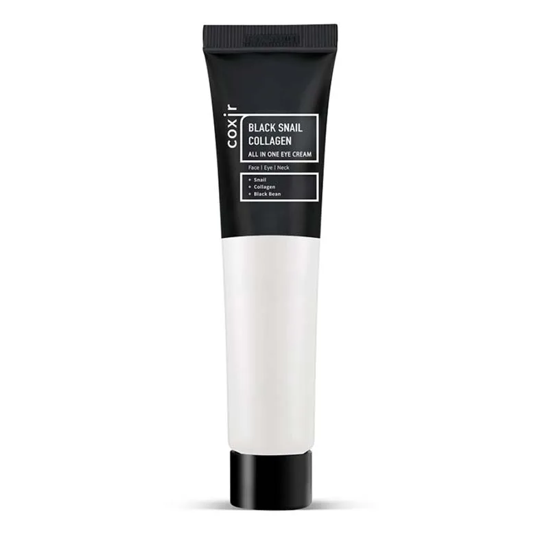 Η Coxir Black Snail Collagen All In One Cream περιέχει τα απαραίτητα προϊόντα περιποίησης δέρματος με βλεννίνη σαλιγκαριού για επανόρθωση, κολλαγόνο και μαύρο φασόλι για μείωση των ρυτίδων & λάμψη στο δέρμα και πράσινο τσάι για ενυδάτωση και ανακούφιση της επιδερμίδας.