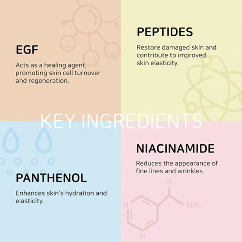 - Χάρη στο EGF που είναι ένα αντιγηραντικό συστατικό, αναζωογονεί δέρμα.
