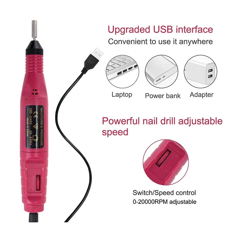 W&D Variable Speed Rotary Detail Carver – Τροχός Νυχιών Ροζ Ρυθμιζόμενης Ταχύτητας USB