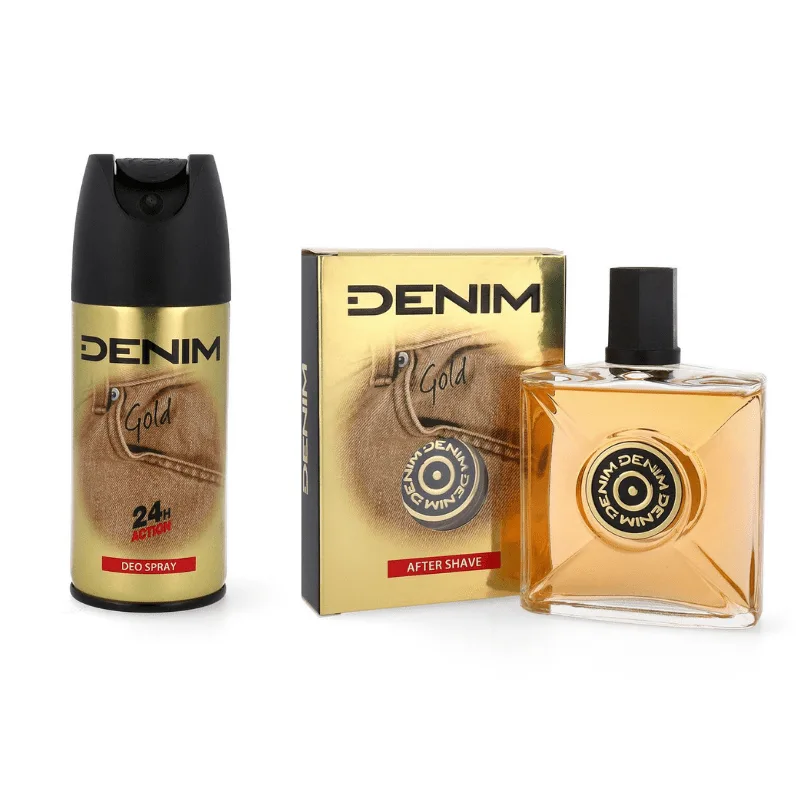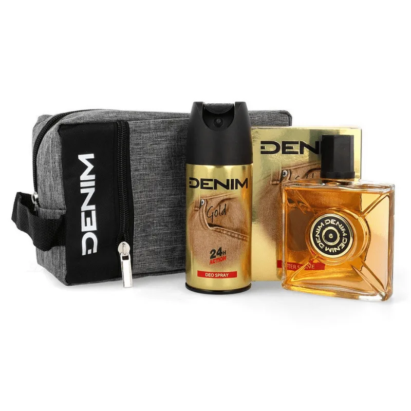 Denim Gold Set After Shave Lotion 100ml, Deodorant Spray 150ml & Cosmetic Bag