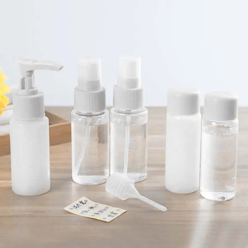 - 5 μπουκαλάκια χωρητικότητας 50ml με 5 διαφορετικές Ροζ αντλίες και καπάκια για να καλύψετε όλες τις πιθανές ανάγκες μεταφοράς υγρών και κρεμών μορφών