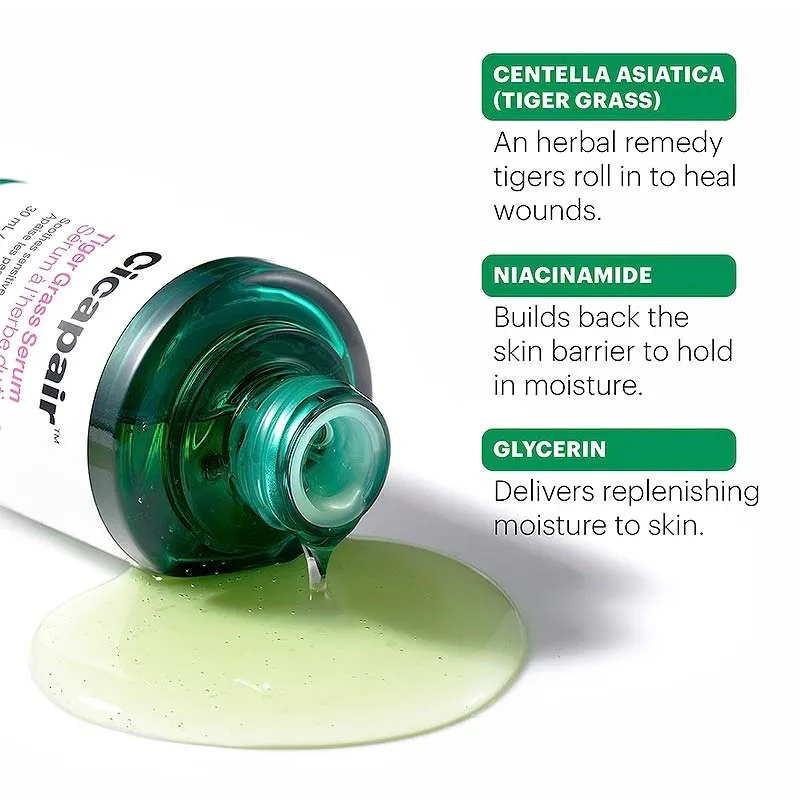 Ορός με σύμπλεγμα Centella Asiatica (Tiger Grass) για να ηρεμεί το ευαίσθητο δέρμα, να μειώνει την ερυθρότητα και να καταπραΰνει τους ερεθισμούς.