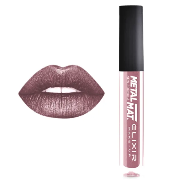 To υγρό κραγιόν Metal Mat της Elixir αναδεικνύει την εμφάνιση των χειλιών σας με μία μεταλλική φόρμουλα η οποία διαρκεί. Η κρεμώδης φόρμουλα στεγνώνει γρήγορα προσφέροντας ένα άνετο αποτέλεσμα με μεταλλικό φινίρισμα.