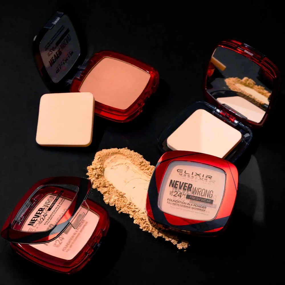 Το νέο Never Wrong Foundation in a Powder της Elixir Make Up είναι η τέλεια λύση για άψογο, φυσικό αποτέλεσμα όλη μέρα. Συνδυάζει την κάλυψη ενός υγρού foundation με την ευκολία και πρακτικότητα της πούδρας, για look που διαρκεί πάνω από 24 ώρες.