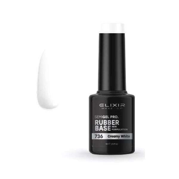 Elixir Professional Semi Gel 736 Rubber Base Creamy White για Ημιμόνιμο Βερνίκι Νυχιών 5ml