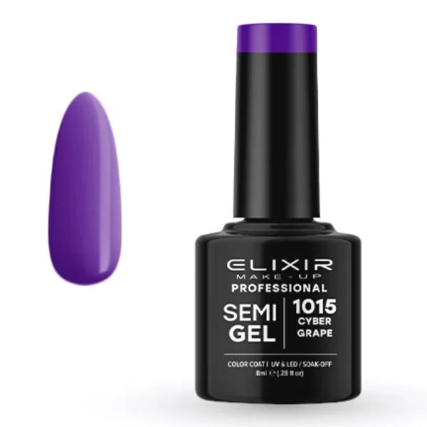 Elixir Professional Semi Gel Ημιμόνιμο Βερνίκι Νυχιών 1015 Cyber Grape Μωβ Μελιτζανί Έντονο Ζωηρό 8ml
